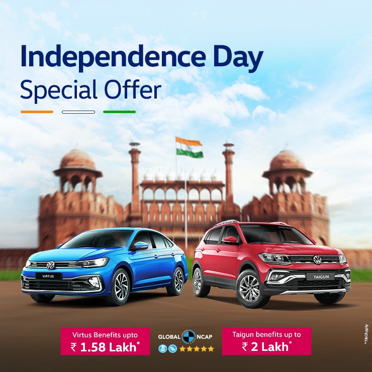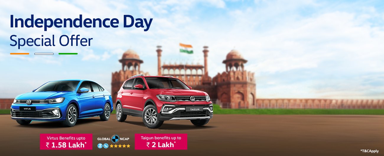 This Independence Day, elevate your driving experience with unparalleled savings on the Volkswagen Virtus and Taigun in Bangalore! At Volkswagen Bangalore, we're celebrating the spirit of freedom with special offers designed to get you behind the wheel of a German-engineered marvel, right here in Bangalore.